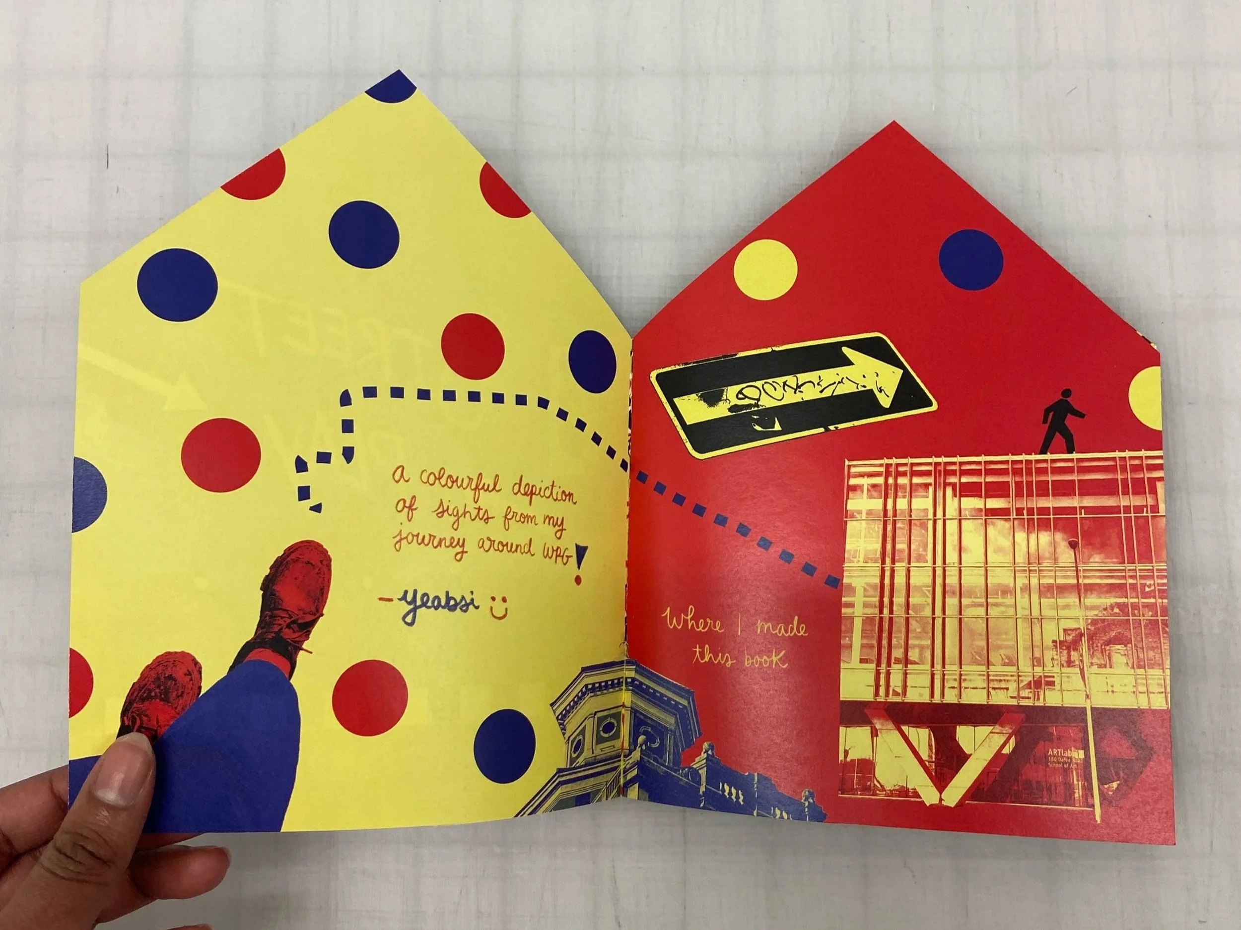 A short and playful zine of my day's journey around Winnipeg. Starting from the University of Manitoba and ending in Osborne Village. Taking pictures as I go, I highlight the textures and playful nature of mundane city street signs and objects. I love Winnipeg so much that when I go to my favourite spots, some of which are featured in here—my world feels like it's highly saturated in colour. It's the best lil' chilly and quirky home.